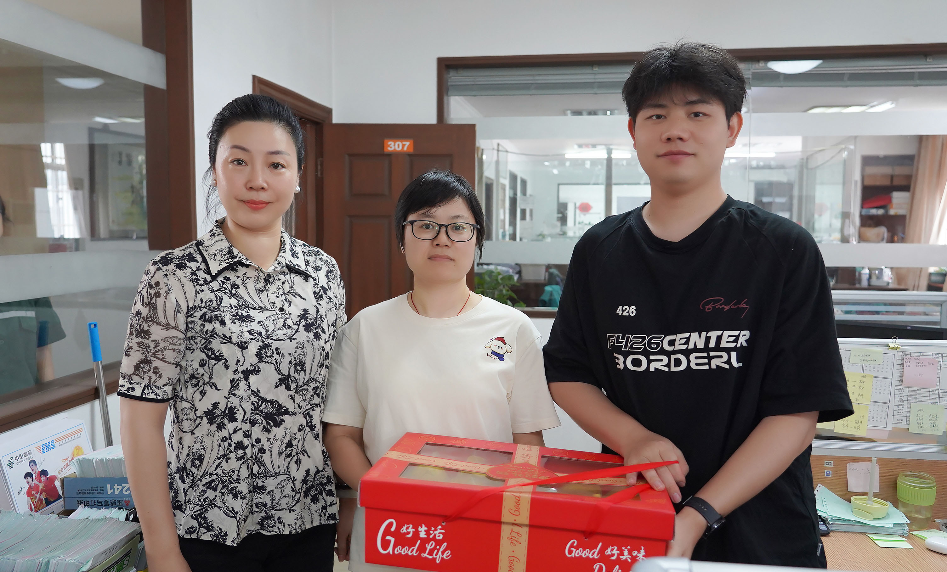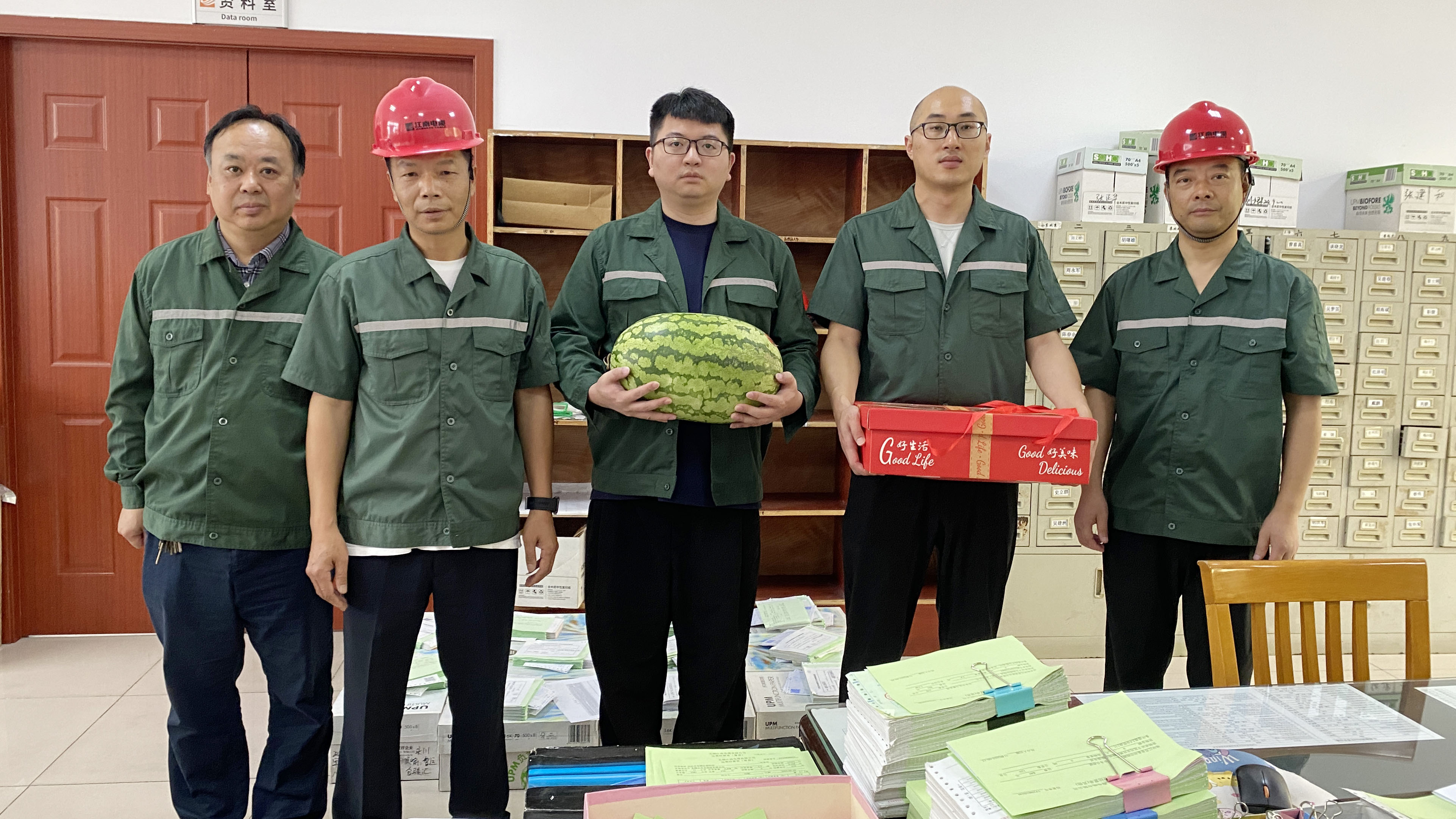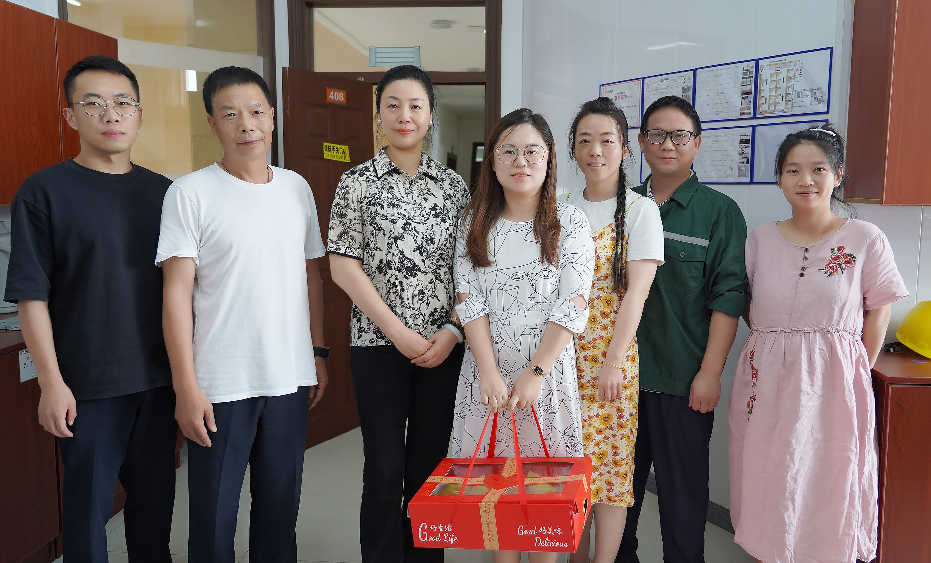 運(yùn)營總經(jīng)理蔣君西、副總經(jīng)理芮一云、總經(jīng)理助理胡亞紅赴辦公樓送清涼