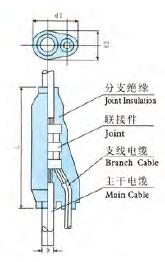 預制分支電纜的聯(lián)接體部分是采用專用PVC或合成材料制成的如右圖所示的分支電纜聯(lián)接體